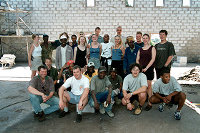 Die Brigade im Januar 2000 hat die Mauerarbeiten abgeschlossen, den Fußboden betoniert, die Elektro- und Wasserleitungen installiert sowie Fenster und Türen eingebaut.